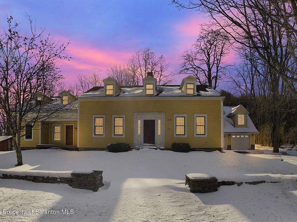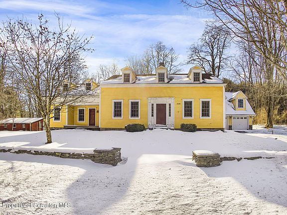 METICULOUSLY RESTORED 4 BEDROOM, 2 BATHROOM HISTORIC FARMHOUSE ON 10 PRISTINE ACRES IN THOMPSON, PA! This one-of-a-kind, fully restored historic farmhouse blends modern elegance with timeless colonial charm. Nestled on 10 beautifully manicured acres, this meticulously maintained property is a nature lover's dream, featuring cleared hiking trails, camping spots, fire pits, walking paths, disc golf, and blueberry patches. A fenced-in garden with potting shed/chicken coop and a large detached two-car garage with a workshop and expansion-ready apartment space complete this incredible offering. Inside, the home is flooded with natural light and boasts a blend of original and upgraded features, including refinished 150-year-old hardwood floors, exposed hand-hewn barn beams, and three stunning fireplaces. The brand-new slate tile mudroom features multiple benches and a custom puppy bathing station for added convenience. The kitchen is equipped with newer cabinetry and Corian countertops. The adjacent dining room features hardwood floors and a charming wood stove, leading into the sunroom with expansive views of the backyard. The main level also offers a living room with a stone fireplace and wood-burning stove, a cozy office/playroom with an additional fireplace, a spacious family room with tongue-and-groove pine walls and another wood-burning stove, and a convenient first-floor laundry room. A full bathroom with tile flooring is located off the dining area. Upstairs, four spacious bedrooms feature all-new windows, fresh paint, ample closet space, and a luxurious primary suite with a large walk-in closet. The main bathroom is a retreat of its own, with slate tile flooring and walls, a soaking tub, and a modern shower. Two staircases offer easy access to the second floor. Step outside to your very own 10-acre private sanctuary, where you can enjoy scenic hiking trails and breathtaking views. Move-in ready and full of character--this historic farmhouse is a must see.