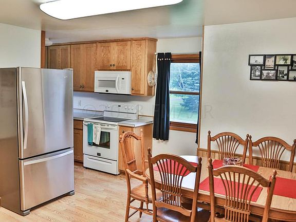 Your own private kingdom with over 15 acres of sprawling land! With an oversized finished & heated shop measuring in at 32'x60', giving you plenty of space for projects and storage. Additionally, the shop features an office and bar area! An extra storage shed sits adjacent to the shop, fully insulated and wired for electrical if desired. The backyard features large gardens, landscaping and wooded areas. This property is conveniently located 23 miles from Fargo,while giving you the secluded feel. The interior of the home has many updates, including custom cabinets, newer windows, insulation, heat pump, gas furnace, basement floor & drain tile. Come see it for yourself!