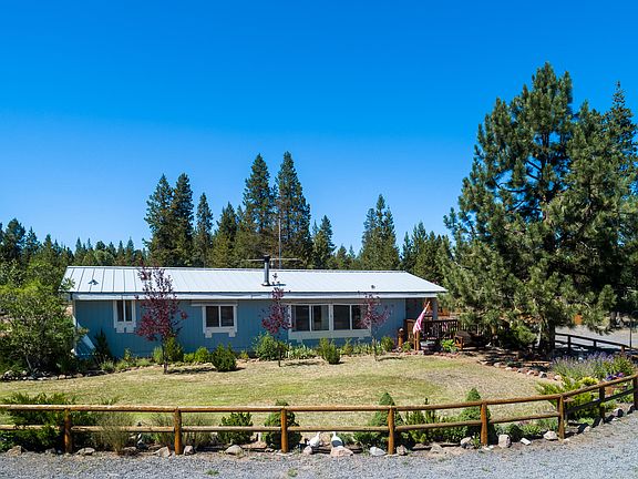Enjoy country living in this well-maintained and cozy home. Private 1 acre lot, minutes to Central Oregon Recreation and 30 minutes to Bend. Convenient Location off paved road. Fully fenced with circular driveway. Enjoy watching wildlife from the large deck. Landscaped yard, garden, Covered RV Parking with electric hookup, Chicken Coops, Heated storage/work shed with electricity Double detached garage with power and shelving.