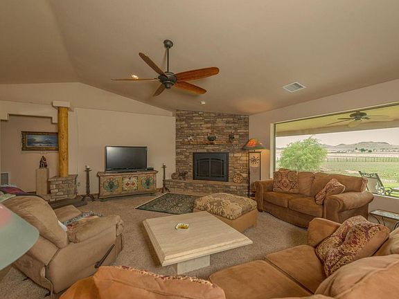 Incredible horse property in Haystacks Ranch with amazing views! Big 7-acre property complete with barn, riding arena, and 3.5 acres of fenced natural Chino grass pasture w/ summer/winter nutrition. This property backs up to state land with gate access to riding trails. The entire property is crossed fenced for pets and loose horses. Fully landscaped backyard with grass and covered porch to enjoy the views. Stunning living room with vaulted ceilings. Beautiful kitchen with all stainless-steel appliances and granite countertops. The master suite has a bedroom with access to the back yard and a beautiful bathroom with a jetted tub for relaxing after a long ride. Lots of space in this home including a separate office and family room. This stunning property won't last long.