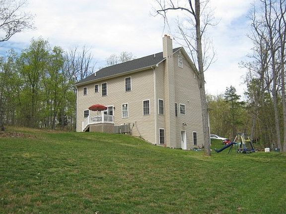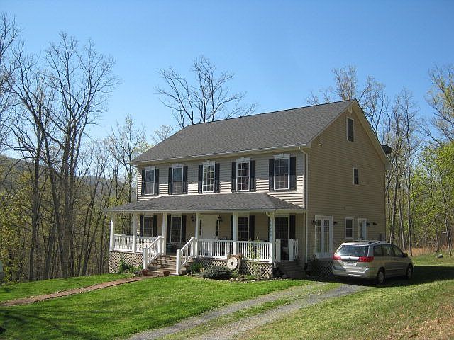 This distinctive colonial style custom built home offers over 4,000 SF and 6.78 partially private wooded acres overlooking Shenandoah National Park. This home offers 4 finished floors that includes 4+ bedrooms, 4.5 baths, master suite with whirlpool tub and garden window, and a formal living room. The finished walkout lower level includes a kitchenette, full bath, bar, laundry room & more! Amenities include hardwood floors, custom oak and pine woodworking, floor trusses, 2 X 6 walls, dual zone HVAC system, custom oak cabinets, recessed lighting, tilt easy clean windows, lots of storage, and a chimney with stove vents on two floors. The property includes landscaped garden with waterfall, large yard, storage shed and access to and streams and hiking.