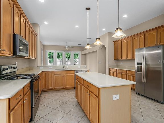 BRING THE FAMILY! 5 Bedrooms / 3 Bathrooms / 2 Car Garage / 2,910 SQ FT. Kitchen features Stone Countertops, Wood Cabinets, Center Island, Breakfast Bar, & Eat-In Area w/ Built-In Window Seat. Spacious Family Room has built in Entertainment Center & pre-wired for surround sound, with French Door that open onto the Covered Patio & privacy PVC fenced backyard. Formal Living / Dining Room offer separation for the holidays and special occasions. Architectural Design throughout the home include Arches, Art Niches, Plant Shelves, & Rounded Corners. Owners Suite has "HUGE Walk-In-Closet". En Suite Bathroom has Corian vanity with dual sinks, glass enclosed shower, and garden tub. This well designed 3-Way Split Floor Plan offers space for the entire family. Home is located on Cul-de-Sac street in Deerfield Lakes with No CDD & Low HOA. Easy access onto SR 52, Suncoast Expressway, US 41, Downtown & Tampa Airport. Nearby beaches, golf courses, schools, shopping, restaurants, and much more!