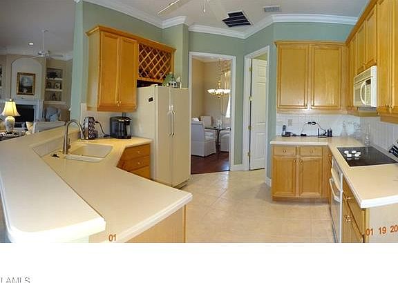 IMMPECCABLY KEPT 3 BED/2 BATH PLUS DEN "CARLISLE" ESTATE HOME OVERLOOKING THE 7TH HOLE! FEATURES 14 FT. WIDE BY 32 FT. LONG POOL AND 7 FT. SPA, W DOUBLE THERMOSTAT, EXTENDED 2 CAR GARAGE WITH GOLF CART ACCESS DOOR, ENGINEERED WOOD IN DINING, LIVING/ DEN W 5-1/2" BASEBOARDS, BUILT INS IN LIVING AND DEN, CROWN MOLDING THROUGHOUT EXCEPT DEN, DECORATIVE MOLDING, CUSTOMN WINDOW TREATMENTS, 12 FOOT CEILINGS, CORIAN COUNTER TOPS/KITCHEN W UNDER MOUNTED CORIAN SINK, 42" CABINETS IN KITCHEN, MARBLE TOP ON DUAL VANITIES, SEAMLESS SHOWER DOOR, MARBLE VANITY IN GUEST BATH, GUEST BEDROOM W 2 FT. ADDED, 2014 SAMSUNG WASHER AND DRYER, LAUNDRY ROOM W LAUNDRY TUB AND 42" CABINETS, 2010 A/C RHEEM 16 SEER, NEWER HOT WATER HEATER, EXTERIOR PAINTED 2013, DRIVEWAY, WALKWAY AND LANAI PAINTED 2016, PLUS SO MUCH MORE! GOLF MEMBERSHIP INCLUDED, ANNUAL FEES APPLY!