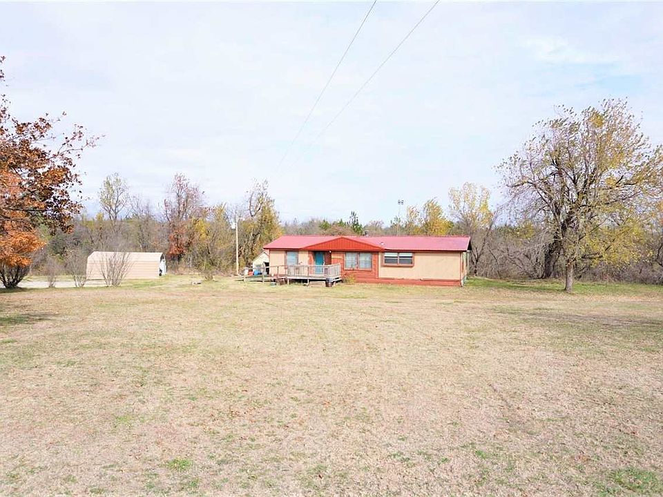 ACREAGE! 3 miles from Lake McMurtry and 4 miles of nice gravel road to pavement. This land has been in the same family for generations. Unique terrain, five outbuildings, carport and large dry cellar are just a few amenities! All electric home w/well water-seller reports average utility bill $125/mo. 4 year old (50 year) metal roof and 2 year old Rheem HVAC. Split floorplan-1,556 sq ft home w/spacious living room, formal & eat-in dining, real wood cabinets throughout and wood burning fireplace.