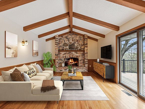 One-owner rambler on .71 acre lot that backs up to nature area. Tranquil and serene setting yet in a convenient Eden Prairie location. This home boasts an "easy to live in" layout and many notable features. In the heart of the home you'll find stunning vaulted beamed ceilings, creating a warm and inviting atmosphere. Expand your living space to the outdoors on the new maintenance free deck overlooking backyard. Large bay windows in living and dining room bring in lots of natural light. Kitchen cabinets have new hardware/hinges and fresh paint. 3 nice size bdrms on the main level. New surrounds were just completed by RE-BATH in main level bathrooms. Downstairs, the bright walkout lower level welcomes you with new flooring and offers additional living space, a spacious 4th bedroom, 3/4 bath and an abundance of storage.