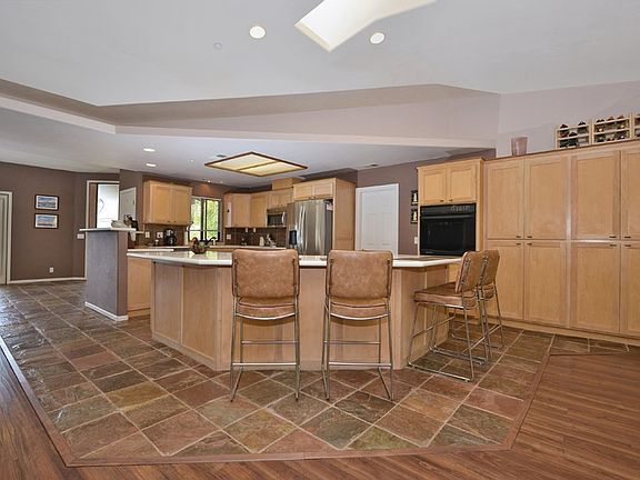 Spacious living and breathtaking views. Enjoy the park out back in this impressive home featuring gourmet kitchen w/solid maple cabinets, slate flooring, solid surface counters and induction stove. Quality features include soaring ceilings, skylights, built-ins, plantation shutters and views from almost every room. Large master suite with views and luxurious travertine master bath. Low utility bills due to well and solar. Backs to hiking and open space. Extra deep garage & RV parking. Fruit trees.