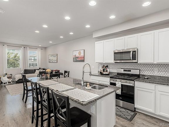 Uncover this beautifully maintained townhome located in the Avion Denver Connection Community with access to pools, a clubhouse, dog park, and over 40 acres of open space nearby. The home offers modern updates blended with warm and inviting details across 3 bedrooms, 2.5 bathrooms and 1,538 square feet. Enter to find an open concept main floor containing the living room, dining room, and kitchen, all brightly lit by two substantial front windows with a layout perfectly situated for large family gatherings. The tastefully updated kitchen has granite countertops, stainless steel appliances, and a central island with seating. A generously sized powder room and access to an oversized two-car garage round out the first floor. Upstairs off the landing area, you’ll find an expansive primary retreat, containing an ensuite bath with dual vanities and a walk-in closet. Two large additional bedrooms, a full bathroom, and a laundry closet complete the second floor. Located on a quiet street, you’re just minutes to I-70, Denver International Airport, Dicks Sporting Goods Park, and miles of trails at the Rocky Mountain Arsenal National Wildlife Refuge. Don’t miss the chance to make this well maintained home and inviting community yours!