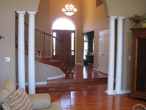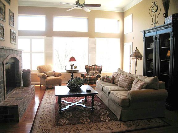 Beautiful home located on cul-de-sac with side entry garage. This premium lot is filled with privacy and has over 1.5 acres per survey. This home has gorgeous maple hardwood floors and ceramic tile thru-out the 1st floor. Enjoy the master bedroom/suite on the main floor with coiffured ceiling, bath has 5X6 shower with 2 heads, body sprayers,and 2 walk-in closets. This home has numerous upgrades thru-out such as crown molding, cherry cabinets, stainless appliances, plantation shutters, mason fireplaces, upgraded windows, security system, and up lighting. Upstairs you will find 2 large bedrooms with a Jack-n-Jill bath and another oversized bedroom with its own bath. There are also 2 finished rooms in the walkout basement, a bedroom(the 5th) with a large walk-in closet and an exercise room. Finished living space in this home is +/- 4,500 sq Ft. Tax records are incorrect as to the lot size and square footage on tax records does not include finished rooms in basement. Neighborhood Description Beautiful, quiet, upscale subdivision that is exceptionally groomed and well maintained.