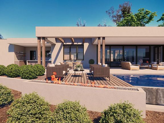READY to bring Your Vision to LIFE! Introducing this A++ homesite perched above the treetops on a quiet Rancho Santa Fe Covenant street, this elevated 2.34-acre lot offers Sweeping VIEWS, golden SUNSET skies, and a rare opportunity to build your dream estate without the wait. Fully approved Covenant Art Jury plans feature a 7,721 SF single-level modern residence with 5 ensuite bedrooms and 2 additional baths (including a pool bath and deluxe powder room). A long, elegant driveway leads past the 1,200 SF 2-bedroom guest house—complete with its own 2-car garage, full bath, and powder bath—before arriving at the main residence. Designed for a dramatic sense of arrival with an expansive great room with soaring ceilings, executive office surrounded by water, a chef’s caliber kitchen and prep kitchen plus game room and wine bar for entertaining. The primary suite is envisioned as a private wellness sanctuary with a large shower, soaking tub, sauna, cold plunge courtyard, and dual closets & water closets. Outdoor amenities include a cascading infinity-edge pool, large spa, multiple verandas, serene lounge areas, and lush gardens for recreation and reflection. This thoughtfully designed estate site is far beyond a blank canvas—it's ready for your vision to come to life in one of Rancho Santa Fe’s most coveted locations. Prime central lot, walkable to the Village and golf and surrounded by all newly built estates. Nearby to one of San Diego's TOP schools, this is an opportunity not to be missed!