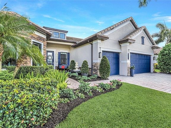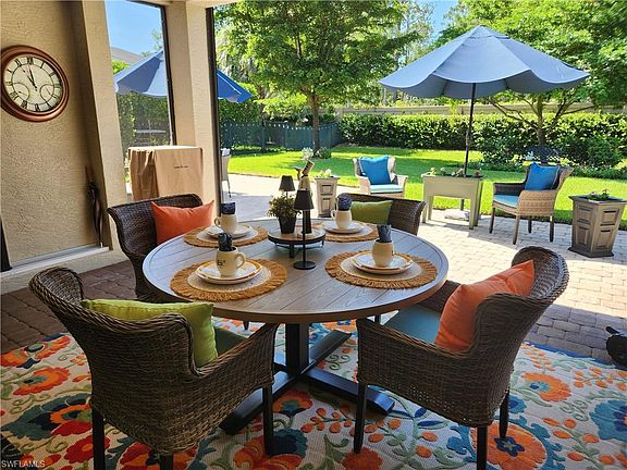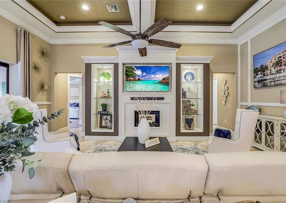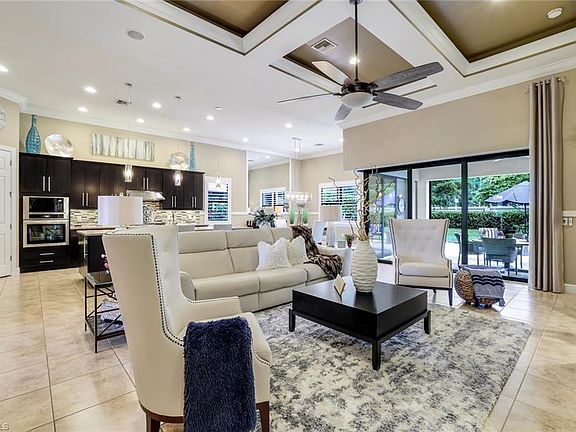 WELCOME HOME! THIS STUNNING HOME is located in the heart of North Naples in the highly desirable, gated community of Camden Lakes where tranquility meets convenience. This beautiful, MOVE-IN READY estate home has southern exposure, is light & bright, and offers its residents 3 Bedrooms, Den, 3 Baths, 3 Car oversized garage, (extended 4') with IMPACT WINDOWS & DOORS THROUGHOUT. ELEGANTLY DECORATED WITH FURNITURE NEGOTIABLE. This home is immaculate, & meticulously maintained & sits on one of the most beautifully landscaped, private & unique locations within the community with a long lake view from the front & a landscaped view from the rear. This home's privacy & curb appeal will immediately capture your attention. Step inside, where you will find volume ceilings & tasteful finishes throughout. The heart of this residence is its highly upgraded gourmet kitchen, offering natural gas, a 10' quartz island & so much more. The open layout connects the kitchen to the spacious living areas, providing the ideal space for entertaining family & friends. The great room has a 14' coffered ceiling & a stunning custom built-in wall unit. From the center of the home, you will enjoy zero-edge impact sliding glass doors that open the inside of your home to the beautiful outdoors. Your covered lanai has an outdoor kitchen perfect for weekend BBQs. Bask in the private, park-like backyard oasis complete with mature shade trees & completely fenced in providing you & your family both privacy & the feeling of expansiveness with plenty of room for you to customize the pool of your dreams. The owner's suite is a serene retreat, complete with an ensuite owner's bath with a large shower & huge walk-in closet. The second oversized bedroom can easily double as another owner's suite, which too, has its ensuite bathroom. All bedroom closets are walk-ins with built-in cabinetry. This home is loaded with upgrades, & thoughtful touches throughout including detailed quality custom woodwork, a custom mirror, all tiled floors, decorative built-in fireplaces, plantation shutters, upgraded lighting, exterior stone, extended lanai pavers, upgraded landscaping, attic with flooring w/pull-down stairs & more! This residence represents an exceptional living experience, combining modern amenities with comfort & style. Amenities at Camden Lakes include a clubhouse, pool, fitness center, covered picnic pavilion, fire pit, bocce ball & basketball court. This home's location is spectacular, offering nearby shopping, SEED TO TABLE, restaurants, entertainment & TOP-RATED North Naples schools including the newly opened state-of-the-art Aubrey Rogers High School—minutes to the beach & airport, and WEST OF I-75. *Seller has official "Notice of Property Not in Special Flood Hazard Area," indicating flood zone "X" for this property, significantly saving on insurance premiums* Low HOA Fees & NO CDD FEE! LOOKS LIKE A MODEL, LIVES LIKE A HOME! DON'T LET THIS ONE GET AWAY!