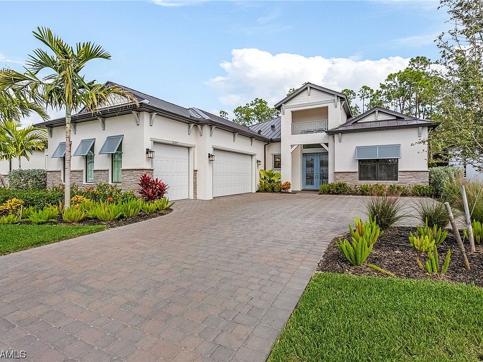 Welcome to Ardena, where elegance meets convenience in one of North Naples' newest gated communities. This exclusive 3 Bed + Den, 3.5 Bath, 2,658 sqft, Saltwater Pool home presents an opportunity to live in a beautifully designed, opulent residence that offers the very best of Naples living. Aventura floor plan by Pulte Homes boasts an open layout, making entertaining a breeze. Features Metal Roof, and High End Upgrades throughout. The large pro-series kitchen is a chef's dream, complete with wood cabinets, quartz countertops, and top-of-the-line appliances. Whole house impact-resistant windows provide safety and energy efficiency, and a gas tankless water heater saves on energy costs. Smart house complete with WiFi garage door, Pool, Alarm and more. Situated just minutes from the cultural hub of Old Naples and surrounded by upscale dining and world-class shopping options, Ardena offers a lifestyle of unparalleled convenience and luxury. A short distance from some of SWFL's top beaches, a haven for those seeking a vibrant, active lifestyle. Don't miss this opportunity to make Ardena your new home and experience the epitome of Naples luxury living. No CDD. Low HOA. Matterport Tour.