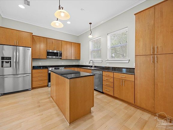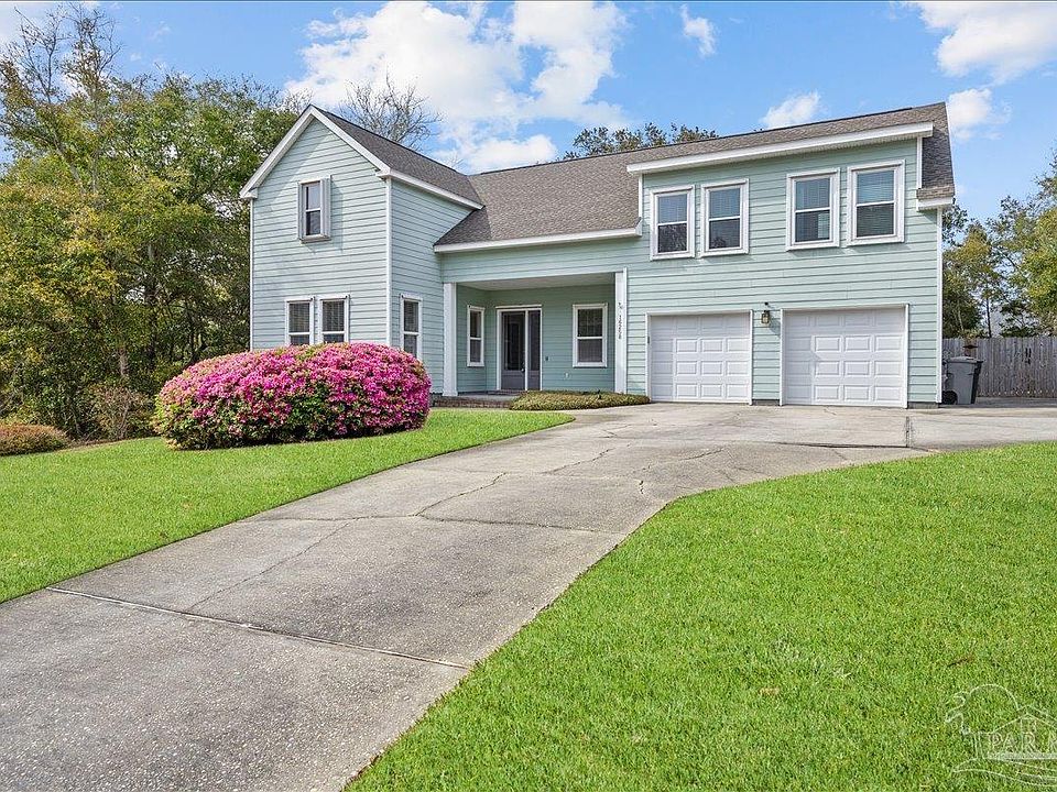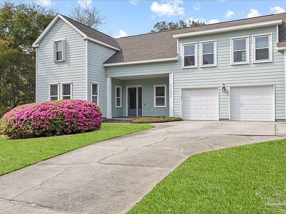 Just minutes from Pensacola NAS! Nestled in the exclusive, double-gated community of Innerarity Island, this stunning home offers privacy, elegance, and natural beauty. Located on a quiet cul-de-sac on a highly elevated lot, it boasts breathtaking surroundings and modern amenities. Nature lovers will appreciate the island’s abundant wildlife, including deer, foxes, and waterfowl. Just a short walk away, the waterways are perfect for fishing, with redfish, speckled trout, and flounder. The community pool and pool house sit along the bayou, offering a serene spot for relaxing afternoons or watching the Blue Angels soar overhead. Tennis courts provide scenic recreation. The fenced backyard is a private oasis, featuring a spacious deck, mature trees, and blueberry bushes. A four-zone sprinkler system, powered by a private well, keeps the yard lush year-round. The home features an open floor plan with elegant crown molding and rich hardwood flooring. The kitchen is a chef’s delight, offering granite countertops, a large island, and modern appliances. Heated and cooled sunroom provides year-round comfort. Upstairs, a bonus room offers flexible space for a family room, media lounge, or home office. The primary suite features a large walk-in closet and a spa-like bath with a double vanity, jetted tub, and stand-alone shower. Three additional bedrooms include a second primary suite with its own private bath, double sinks, and a walk-in shower. The upstairs laundry room adds convenience, while the walk-in attic offers easy-access storage. The two-car garage includes a large storage/workroom and extra storage under the stairs. Recent upgrades include a new roof (2021), two zoned HVAC units (2021), a hurricane-rated garage door (2023), and Low-E windows in the upstairs bedrooms (2023), new garbage disposal 2025. The home also features hurricane panels, a generator hook-up, and a separate 50-amp circuit.