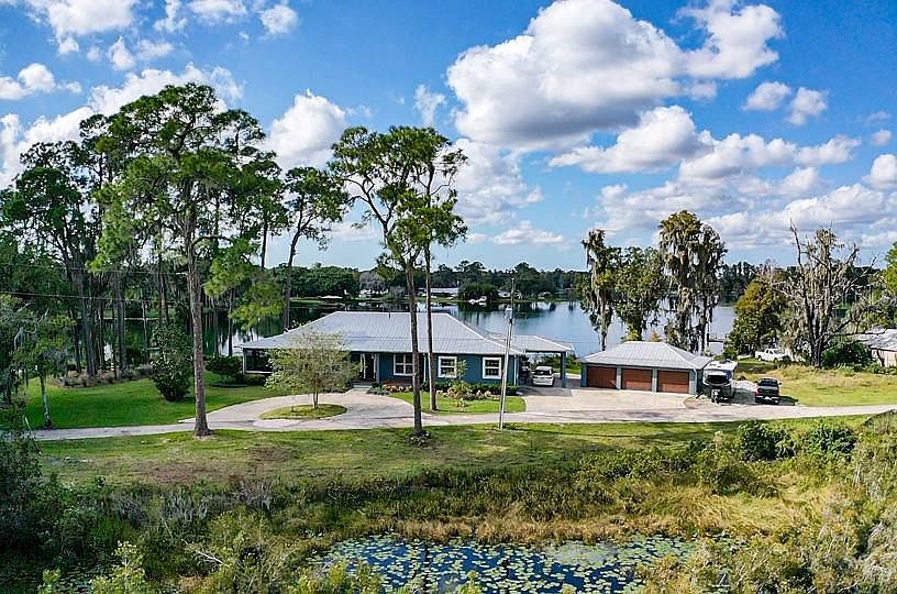 Featuring 415 feet of lakefront on picturesque Church Lake and panoramic water views from nearly every room in the house, this one-of-a-kind custom home will impress. Situated on a quiet dead-end road, yet close to the exceptional amenities Tampa Bay has to offer, you truly can have it all. Serene, 70-acre Church Lake (connected to 20-acre Echo Lake) is perfect for fishing, watersports, and sunset cruises. The front of the home faces yet another tranquil conservation lake. Constructed by Designer Decks & Docks in 2020, the new Dock (with Boat Lift) is decked with composite decking. A Boat Launch makes it easy to launch and pull your lake toys. The bright and airy Great Room / Kitchen area takes full advantage of the (hard-to-find) 415 feet of lake frontage. Designed without upper cabinets to showcase the unbelievable water views, the Kitchen boasts abundant storage, a walk in Butler’s Pantry, dual fuel range with oven/oven drawer, and side-by-side all refrigerator / all freezer units. Whether entertaining or appreciating a quiet night at home, you’ll find yourself stopping to take in the view down the center of Church Lake as well as beautiful side-yard and lake cove views. Enjoy relaxed sunsets and peaceful sunrises on the generous (approx. 1,000 sq. ft.) Wrap-Around Porch. Screened and safe from those annoying flying insects that come out at dusk, the Porch takes this lake home to the next level. Read a book next to the cozy wood burning fireplace (with occasional glances into lakefront bliss) or prepare a lakeside meal on the Big Green Egg and covered Outdoor Kitchen. One could argue this is the perfect size home, with 3,058 heated-sq. ft., 4 bedrooms, 3.5 bathrooms, air-conditioned attic storage, a detached 3-car garage, and additional covered parking that leads into the mudroom. The Primary Suite delivers striking views down the center of the lake, a generous sized walk-in closet, and includes dual sinks, granite top, all wood knotty alder cabinets, free standing claw bathtub, and a walk-in shower. Bedroom 2 also enjoys commanding views of Church Lake and is equipped with an Ensuite Bathroom. Bedrooms 3 & 4 were awarded beautiful views of the private conservation lake in the front of the house. Both are nice sized rooms and Bedroom 4 boasts a walk-in closet. The Office / Study (12x15) includes a generous sized closet and views of the conservation lake. Hardwood flooring throughout all main living areas and the primary bedroom. All other bedrooms are carpeted with tile bathrooms. The side-yard conveys a swing set/fort perfect for keeping kids entertained while relaxing in your own peaceful oasis. This is a must see for anyone on the hunt for exceptional lakefront living!