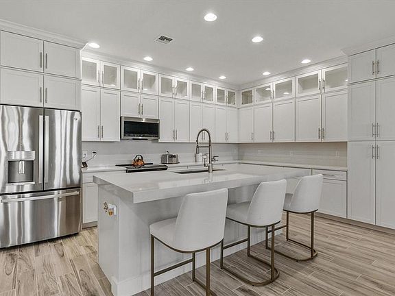 Welcome to your dream home nestled in the picturesque community of Skycove. This stunning two-story residence boasts 3 bedrooms, 2.5 bathrooms, and a versatile loft area, perfect for today's lifestyle. As you approach, the impeccable landscaping sets the tone for the elegance and charm found within. Step inside to discover a seamless flow of brown wood-like tile adorning the entire first floor. The heart of the home, the kitchen, is a true showstopper with its ceiling-reaching white shaker cabinets, shimmering white quartz countertops, and sophisticated silver plumbing and hardware. A generous island, topped with a 3" white quartz slab, houses an under-mount sink and is complemented by top-of-the-line stainless steel appliances, including a French door refrigerator. The ample countertop space is ideal for culinary adventures, while the adjacent dining room invites large gatherings, bathed in the natural light streaming through the nearby windows.