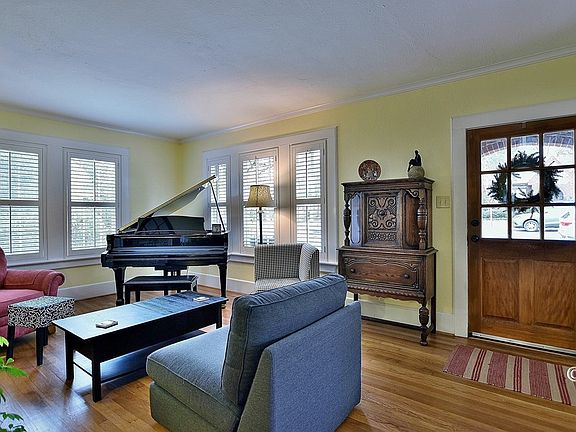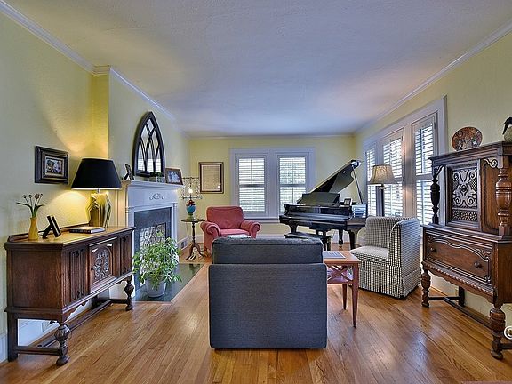 This home is move-in ready. Beautiful hardwood floors throughout, large bedrooms, 2 living areas, great natural light, a huge backyard and large patio. In back there is a fireplace and BBQ grill and there is a nice sized front porch. Average power bill in summer is $138/mo and in winter $51/mo; gas water heater avg bill in summer $40/mo and winter $121/mo. Average water bill $64/mo. There are built-in shelves in the dining room and a window seat with storage. The kitchen island is movable. The seller has a home warranty in place and will transfer to the buyer with a start date the day of closing.. The kitchen has a pantry and lots of space. The roof was replaced in 2010 with 30-year architectural shingles. Plantation shutters or blinds are in every room. The den has built-in bookshelves and two closets. The bathrooms are large and have tile made for a retro look. This is a great layout and plenty of room for a family or for someone who wants some extra room.