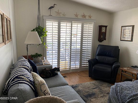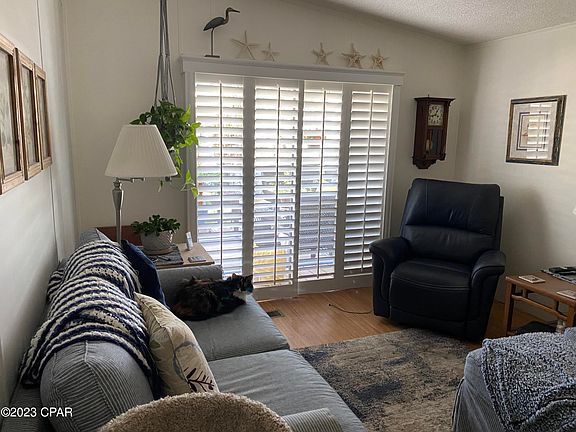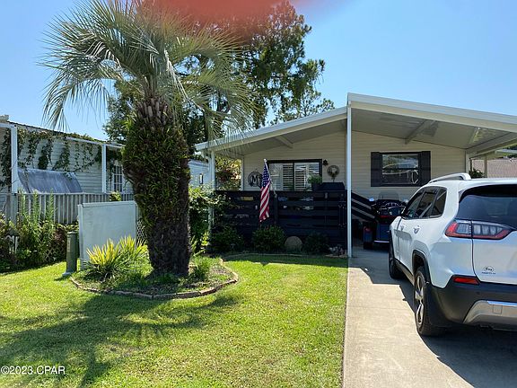 Seller very motivated! As Is ! Charming manufactured home in an over 55 community plus you own the land, too! The community has been well cared for with a well run Home Owner's Association and yes, great reserves. Community also boasts a heated pool, community room, grounds for gatherings and fire pit and a gated storage area for your boats and RV's!! This home has a great kitchen with appliances remaining, with dining room and a beautiful deck to enjoy the beautiful weather. Washer and dryer remains! . New storage shed in the back yard. Carport is here, too adjoining steps leading to sliding glass door. This is a must to come and see! Cash and conventional only. Buyer must be 55 or older and occupy the home. This is a beautiful, well-kept, quiet 55 + community in the heart of Panama City Beach. This community provides easy access to all Panama City Beach has to offer, but tucked away off the beaten path. The community features a heated/cool pool, clubhouse and a private street (with no through traffic)! Golf cart friendly and fun friendly! The HOA covers water, trash, sewer, basic cable, irrigation and the pool and clubhouse usage! Two bedrooms and two bathrooms at the back of the home.