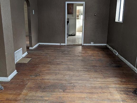 A house that could use some love, but has lots of potential. It has 3 bedrooms and one full bathroom along with an unfinished basement that could be a large family room or additional bedroom. A charming large dining room with hardwood flooring. The kitchen has tile flooring with wood cabinets. Above the sink is a darling window and shelf for your plants or decorations. From the kitchen is the dedicated laundry room complete with a window. The living room has lots of space and a ceiling fan. Out back is a detached garage featuring a loft for additional storage. The backyard also has space for your RV parking. Overall, it's a home with lots of character and tons of potential.