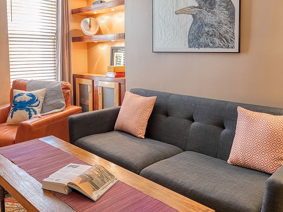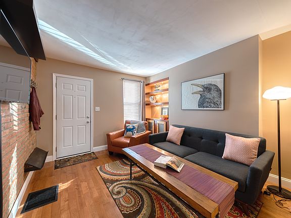 UPDATED 2br/1.5ba interior RH w/ an artsy flair & exposed brick on both levels. PARKING PAD POSSIBLE. Open concept main floor feat: hard floors, built-in shelves, dining room, concrete kitchen counters with glass tile backsplash. Main floor powder room & laundry. Rear patio is spacious & great for entertaining. UpperLevel boasts natural light, new bamboo HW floors, & full bath w/dual showerheads.