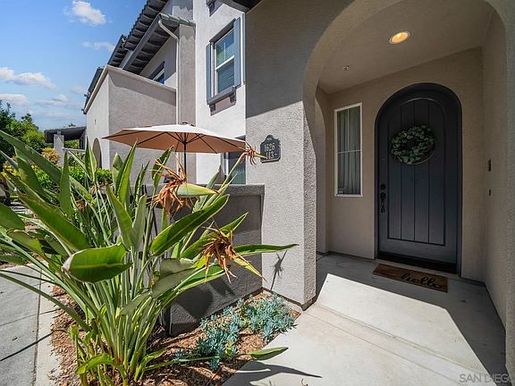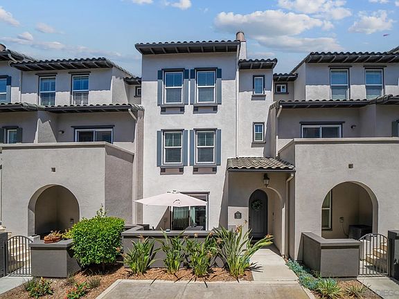Welcome to Agave/Saguaro Community located in the Winding Walk Neighborhood in Otay Ranch. This modern mediterranean style townhome offers versatile living spaces spread over three levels, making it perfect for it's convenience and functionality. The first floor features a bedroom, perfect for guests or as a private home office with a slider door leading to a cozy front patio. On the second level, you have ceramic tile floors leading into an open-concept kitchen and dining area. Newly painted kitchen cabinets and stainless steel applicances complete this beautiful space. Adjacent is the living room, airy and bright, with a charming fireplace for those cozy evenings. This level also includes a convenient laundry room and a half-bath, blending practicality with style. The third floor features the primary suite with an attached en-suite bathroom, and an additional bedroom with its own bath. An attached 2-car garage offers ample storage and direct access into the home. Within the Agave/Saguaro community you have a large playground and a relaxing pool and spa. Additional amenities include access to a master community clubhouse which includes two additional pools, a gym, and a clubhouse available for hosting parties or gatherings. Surrounded by beautiful parks, hiking trails and the nearby lake, this townhome is ideally located within walking distance to schools, shopping centers, and entertainment venues, offering an all-encompassing lifestyle.