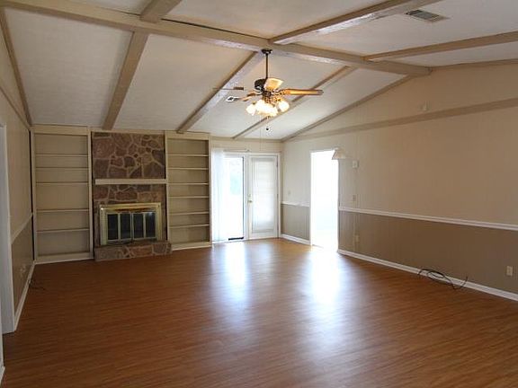 Very nice home 1 level. 1610 sq feet enclosed garage 400 sq feet, vaulted ceiling in great room. Laminate wood flooring. Large great room with wood burning fireplace and builtins. Separate dining room, eat in kitchen. Kitchen has electric stove, fridge, dishwasher, garbage disposal. Laundry room adjacent to kitchen, central heat & air. Original garage converted into a recreational room (heated & cooled) Side door entry into rec room and side driveway. Master bedroom features private bath.