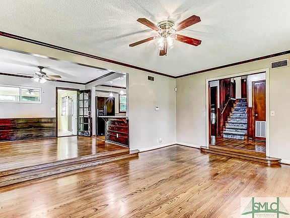 Unique tri-level mid century modern home in Parkside community. Located on a quiet dead end street on double lot. This is your opportunity to have a separate space for teen or move in mom & dad and have the coolest house that all their friends will want to gather at. Entire home renovated in 2007, including ground level transitioned to a bedroom, living space, efficiency kitchen, full bathroom with rolling/walk in shower access and handicap bench&bar, as well as a bedroom with a bar in case the parents are feeling funky. Bedroom includes exotic dancer pole, that is versatile, as the previous elderly owner used it for balance to pull up his pants. The main house includes 2nd and 3rd floors with 3 bedrooms, 2 1/2 baths, great room with gorgeous bricked fireplace&hearth and built in bookcase, dining room, and sunroom. Pristine hardwood floors throughout 2nd & 3rd levels (including underneath carpet in bedrooms).Bring your design talent and make this charming home your pièce de résistance