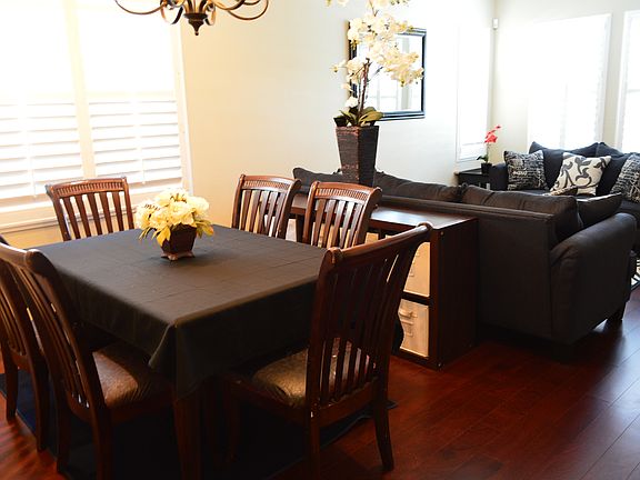 Wood flooring in kitchen, living, family and some hallway areas. Granite counters and backsplash in kitchen. Wrought iron staircase. Stamped concrete and high quality artificial grass in rear yard with trellis. A/C. 1 bedroom w/private shower/toilet 1st floor. 4 bedrooms and 2 baths (including master bath) on 2nd floor. New carpet stairs and 2nd floor added 2012. New high effeciency dishwasher, garbage disposal, over range microwave added 2013
