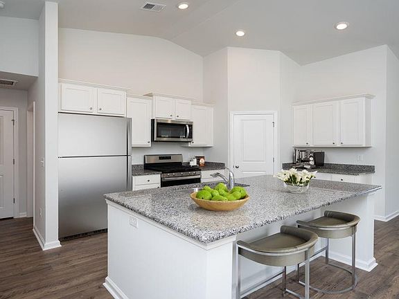 Lovely, low maintenance, paired ranch home in a brand new community! This Tuscan floorplan offers a spacious, open layout all on a single level. With vaulted ceilings, tons of natural light throughout the living and dining areas, large kitchen island, and spacious covered porch with water views, this home is perfect for entertaining! The kitchen also features granite countertops, stainless Whirlpool appliances, white painted cabinets, and large pantry with ample storage. Roomy primary bedroom with walk-in closet and private bath with dual vanity and 5 ft. walk-in shower. This home also features laminate flooring in the main living areas, a tankless water heater, and our Home Is Connected smart home package. Yard and exterior maintenance are all covered! 4' black aluminum fencing is permitted (per HOA approval). *Photos are of a similar Tuscan home. (Home and community information, including pricing, included features, terms, availability and amenities, are subject to change prior to sale at any time without notice or obligation. Square footages are approximate. Pictures, photographs, colors, features, and sizes are for illustration purposes only and will vary from the homes as built. Equal housing opportunity builder.)