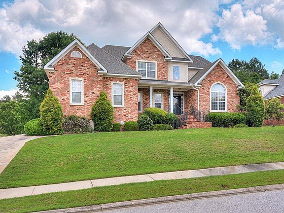 Columbia County, Evans Ga, 5 bedrooms 3.5 bathrooms, corner lot, solid brick home, and owner suite located on the main floor. Owner's suite has triple tray ceilings and large custom walk-in closet. Owner's bathroom has double vanity along with a large 6 foot jetted whirlpool tub. Upstairs there is a second junior suite with a private bathroom and walk-in closet. All other bedrooms have walk-in closets. This home features a gorgeous gourmet kitchen, open to the living area, with gas cooktop stove and built-in wall oven, lots of cabinet space, granite countertops, upgraded stainless-steel appliances Large formal dining area off the kitchen and living area make entertaining a breeze. The office or secondary living area on the main level is off the large foyer and very spacious. There is a gorgeous two-story catwalk overlooking the great room/living area and the grand two-story foyer. The great room has a fireplace and is open to the kitchen, making family time easy and enjoyable while no one feels left out! This recently painted home has a very open elegant floor plan, gorgeous REAL hardwood floors, rocking chair large front porch and a heated/cooled sun porch that doubles as a screened-in porch when the weather is nice. Enjoy entertaining on the oversized deck with a breathtaking view of a well-kept yard. The top rated Columbia County schools, the neighborhood clubhouse, pool, lake, and walking trail are all bonus attributes that come with this beautiful property.