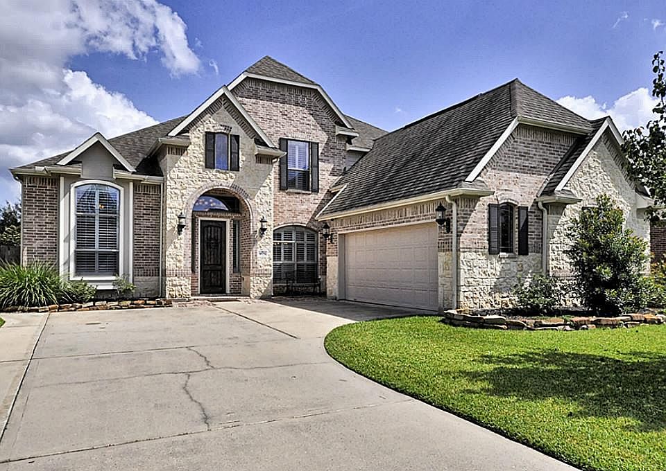 Brick/stone home with tons of upgrades! Grand staircase! Kitchen w/endless granite/cabinets,copper farmhouse sink, 5 burner gas range/hood, microwave, dishwasher, island, huge pantry, and coffee bar/butler's pantry. Plantation shutters throughout & double crown molding! Formal Dining, Study, Game, Media Room w/surround sound. 2 story Den w/stone fireplace! Master has dual walk-in closets w/Built in cabinets. Shower has dual heads, body sprays. 2nd Bedrm & full bath down. TX basement! Huge patio!