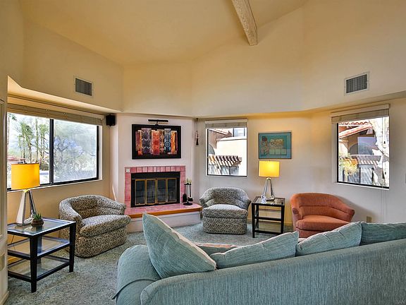 Rarely available 2br, 2ba home on the Western exterior of the Casitas neighborhood with beautiful mountain views. This home is located within the gated golf course community of Rams Hill featuring an award winning Tom Fazio designed golf course. Enjoy the amenities of the onsite club house, restaurant, and pro shop just a short walk or golf cart ride away. The exterior maintenance and grounds are maintained by the association so you can come and enjoy the desert worry free!