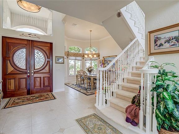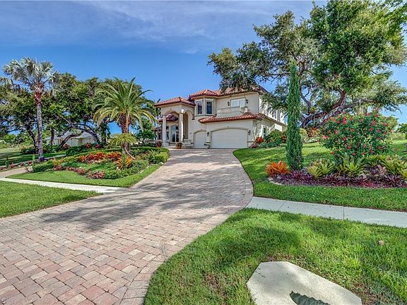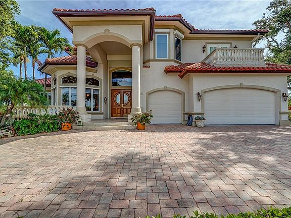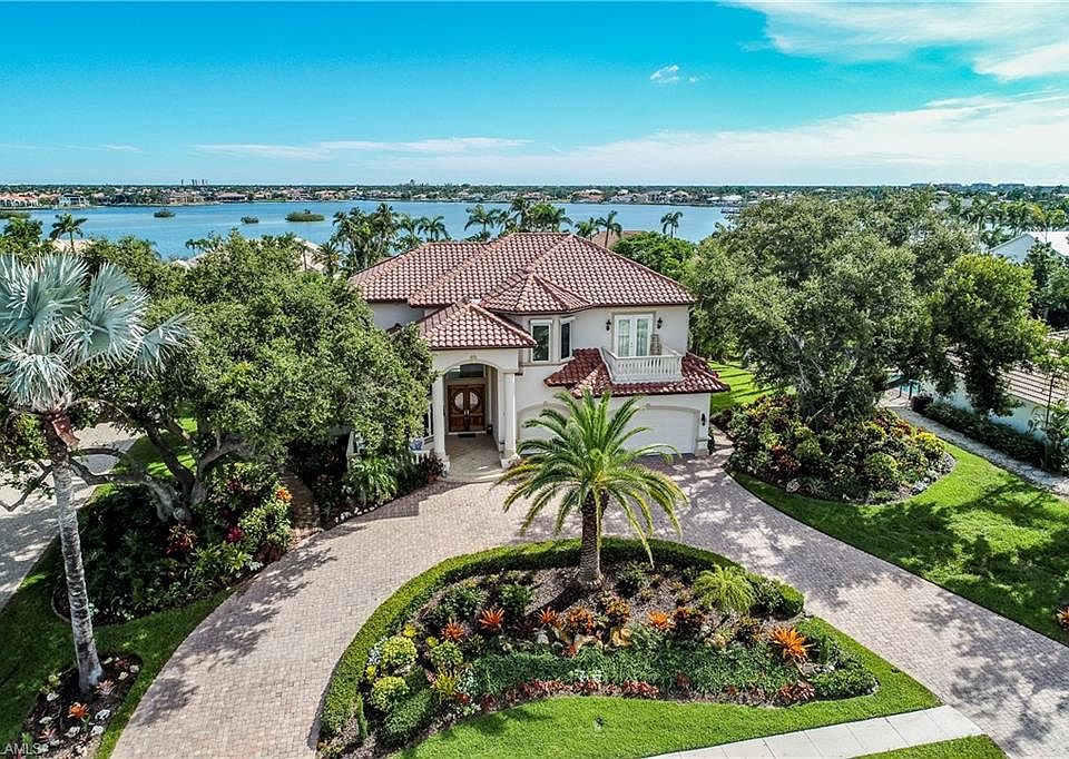 This truly is a ONE-OF-A-KIND HOME that you will not find anywhere else on the Island. This gorgeous 3,600 sqft. home sits on a hill overlooking Roberts bay in the exclusive estate section of Marco Island. Due to the elevation of this home, no flood insurance is required! The curb appeal of this home is the envy of the street. As you drive up the circular driveway you will notice the contemporary Mediterranean architecture, grand entrance and 3-car garage. As you enter the home you are greeted by soaring ceilings and multiple large windows that let the natural light pour into the two-story great room. The large, open kitchen features white cabinetry with chrome accents and stunning granite countertops. The first-floor master suite has a lighted double tray ceiling, large master bath with walk-in shower, walk-in closet with, and pocket sliders that lead out to the grand patio. Moving up the staircase you will arrive at a second-floor balcony overlooking the great room, open loft and three bedrooms each with a private bathroom. You must take the virtual tour and see the view of the bay from the second floor. It is ABSOLUTELY STUNNING! This home is a MUST SEE and will not disappoint!