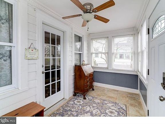 This charming 3 bedroom 2 story home in desirable Cinnaminson is updated and move in ready! Step into the enclosed sun lit updated front porch. From there you enter the open living room dining room area with sparkling hardwood floors. Updated kitchen includes newer counters floor and stainless appliances. Convenient back mudroom 1st floor laundry right off the kitchen. The 2nd floor includes three bedrooms with beautiful hardwood floors and an updated full bath. The full basement is great-so clean and spacious with unlimited possibilities. The side yard has been freshly paved and has enough room for three cars. The beautiful fenced back yard includes a deck, fire pit, shed and a detached garage. So many updates including newer furnace, windows, doors, roof, and siding. Close to major highways, shopping and the Light Rail train.