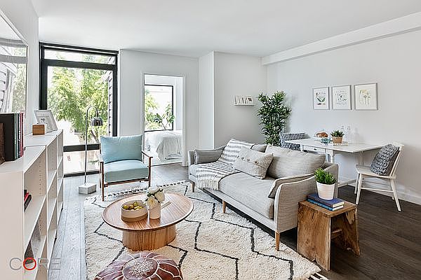 The building accepts using Assurant for the security deposit. If approved through Assurant, the tenant would pay the broker commission and one month's rent at lease signing, and pay Assurant a fee for covering the deposit. PHB is a top-floor, one bedroom with a huge private terrace/deck. Utilities, including gas, are included in the rent except for electricity and Wi-Fi. Welcome to The Mill, a new luxury elevator building located on the border of Bushwick and Ridgewood. The lucky residents of The Mill have access to state-of-the-art amenities, including a virtual doorman, a business center, a package room, a lounge equipped with a pool table and ping pong tables, and a rooftop deck. A large, modern laundry room is available for residents in the building. Wi-Fi is available in the common areas as well. Storage and parking are also available for a monthly fee. Transportation to Manhattan and other parts of Queens/Brooklyn is easily accessible, as both the M and L subway lines are located a mere block away. The luxury residences feature plenty of natural light, oversized floor-to-ceiling windows, air conditioning/heat, incredible finishes, and recessed lighting. The kitchens are equipped with modern appliances. In addition, the building is pet friendly. Guarantors are accepted. Feel free to reach out to schedule a tour for any of the available units in the building! Please note, these images are of model residences. Finishes/layouts are similar.
