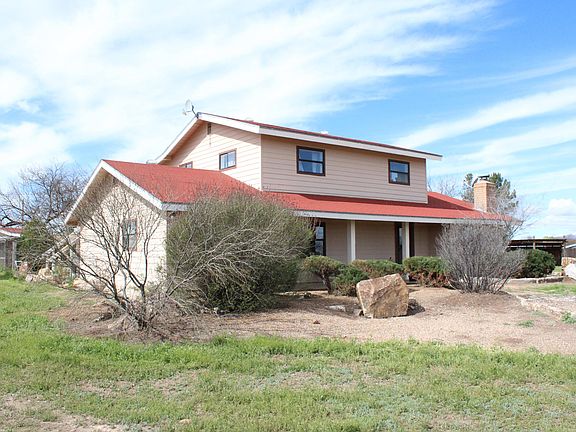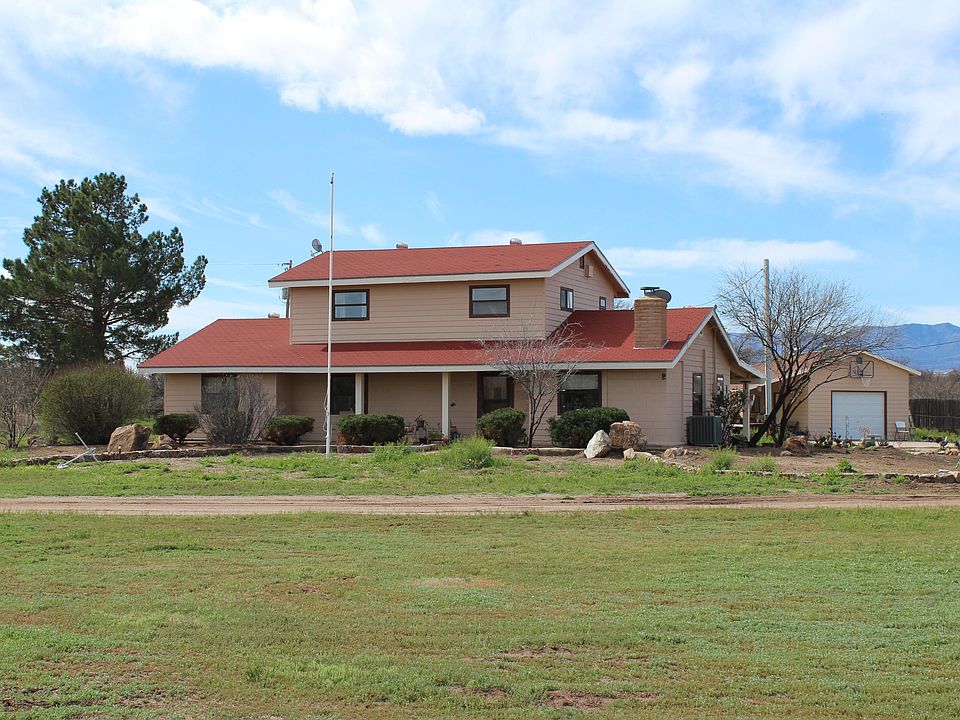 4 bedrooms 2 bath house on 4.34 acres! 2 story home with a wrap around porch on the second level with spectacular sunset views over the Rincon mountains.The house sits on flat usable land and is all level and fenced. There is a large separately fenced garden withwater access. There is a pond (currently dry; fills when and if the neighbors irrigate) with a screened in10' x 8' boathouse.Beautiful pine paneled living room, full stone fireplace, large natural Douglas fir beams, an Arizona room (300 sq. ft.), large 16 high 16' x 24' garage with installed work benches and a swamp cooler. 34'x14' loafing shed (horse potential) with a 50 Amp service panel. 35 min to Tucson and 35 min to Sierra Vista. Heat and AC are provided by a Rheem heat pump with 4 years left ona 10 year warranty!
