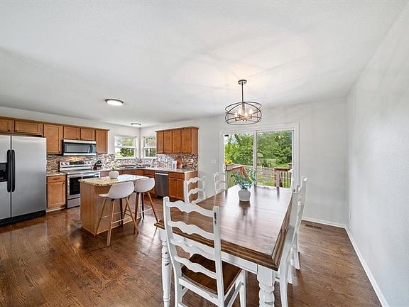 Completely move-in ready, this home truly sparkles from the moment you walk in. Freshly painted with real warm-toned hardwood floors, the open-concept layout is perfect for entertaining or enjoying cozy family time. The kitchen features granite countertops and offers beautiful views right from the sink, seamlessly connecting to the dining and living areas.