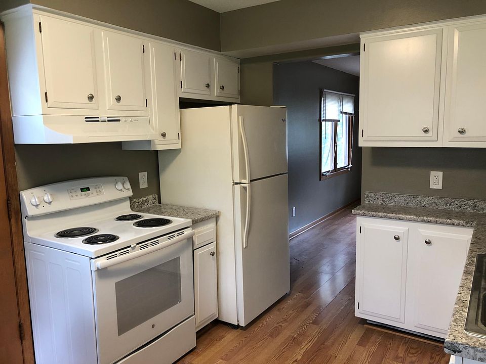 2bedroom 2 bath side by side duplex. Hardwood floors throughout. Large backyard space. Tons of storage. Attached 1 car garage. Stove fridge dishwasher provided. Pets ok. Dog add to $50/Mo pet fee. Cat addtl $100 deposit. Available 3/1/2020. Deposit $1075. Rent $1075 We mow for you