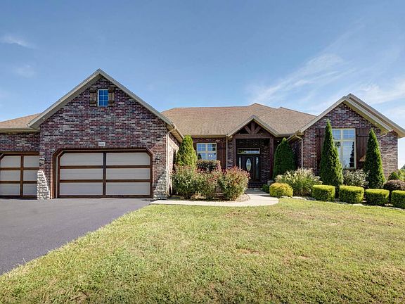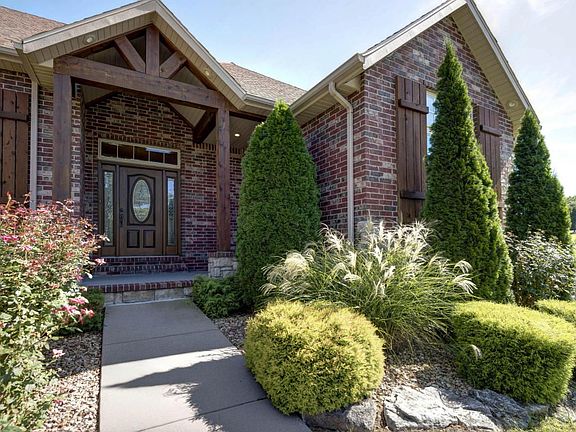 Stunning 5 bed, 3 bath, 3 car garage all brick & stone home situated on 5 acres in desirable Nixa school district! Home greets you with a covered porch & walks into a large foyer with hardwood floors, formal dining, & open floor plan surrounded by arched walkways, vaulted ceilings, expansive windows for natural lighting & a gas fireplace with mantle in the living room. Spacious kitchen/dining, island/kitchen bar, gorgeous granite counters, 5 burner gas cooktop, floor to ceiling built-in pantry cabinet plus plenty of cabinet space! Partially covered deck, with amazing views! Spacious master suite offers master bath with double vanities, jetted tub, walk-in shower, & over-sized walk-in closet. Built for entertaining in basement, nice arched wet bar, with large bedrooms & great storage too!