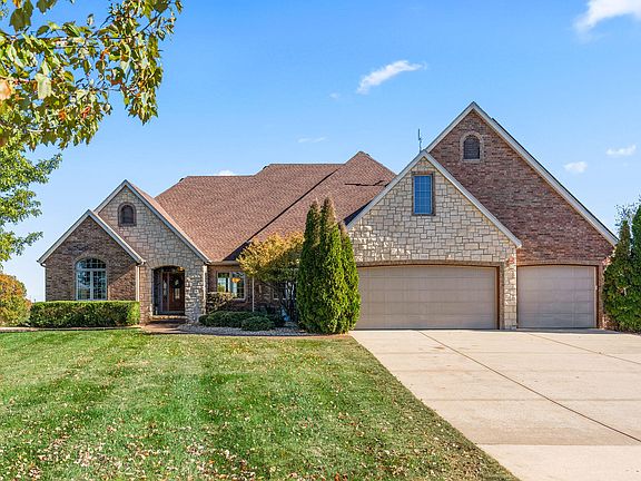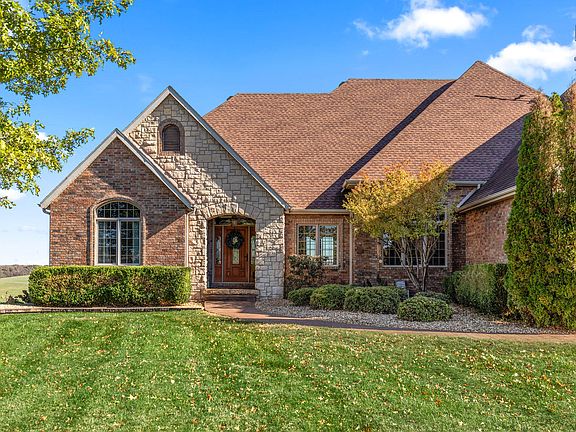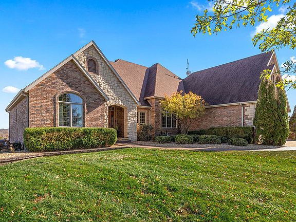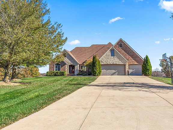 Step into your exclusive retreat of opulence with this exceptional 6-bedroom, 4-bathroom, 6-car garage, all-brick basement residence that sets a new standard for comfort and sophistication. As your gaze meets the striking exterior, revealing panoramic views and invigorating fresh air on this expansive 5-acre estate, an immediate recognition arises. Meticulously manicured landscaping sets the stage for what lies beyond--an inviting and impressive home.Upon crossing the foyer, embrace the warm glow of soaring ceilings and radiant floors in the capacious family room, featuring tray ceilings and an inviting fireplace--the perfect setting for gatherings. Delve into the details of the kitchen-- a culinary retreat equipped with top-tier appliances, granite counters expansive island, and a convenient pocket pantry for all your storage needs. Picture yourself crafting meals in this gourmet space, creating cherished memories along the way..Master suite transforms into a personal sanctuary, inviting you to unwind while immersed in the hues of breathtaking sunsets. This space also boasts a walk-in tile shower and a commodious closet, seamlessly blending convenience with indulgence for your daily routine. Two additional bedrooms on the main level provide versatile spaces, while an extra bedroom and bathroom await upstairs.Prepare to be captivated by the lower level - a walk-out basement that steals the spotlight. Currently utilized for entertainment, this versatile space features a full kitchen and a subtly lit bar that exudes glamour. Bright and airy, this area defies all expectations, offering limitless possibilities. With two more bedrooms, an office, a full bathroom, and a second utility room, this home will accommodate multi-generational living seamlessly.But the enchantment doesn't cease there--step outside for sweeping views of treetops and hills in every season.