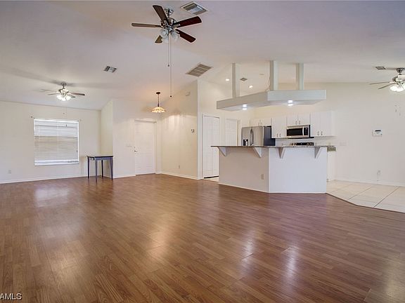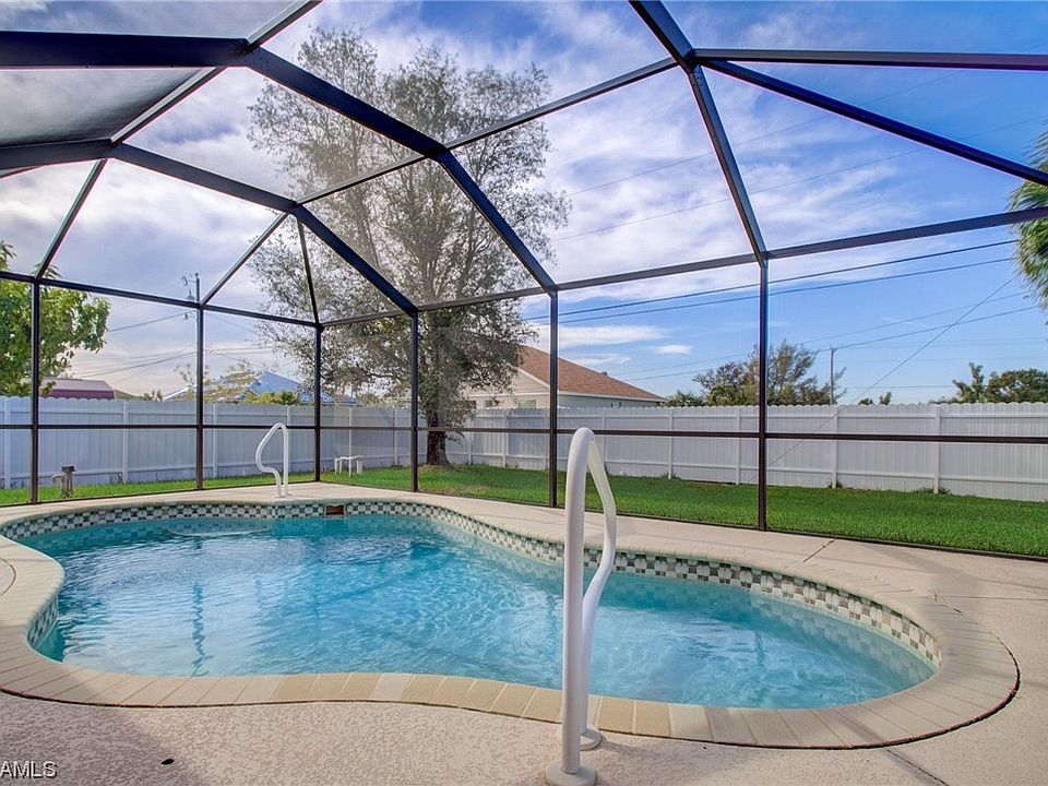 Welcome to your slice of paradise in SW Cape Coral, where this charming pool home awaits. Boasting a prime location directly across from the prestigious Pines Golf Course, this residence offers a delightful open great room plan, perfect for entertaining or simply unwinding in style. With 3 bedrooms, 2 baths, and a cozy breakfast nook, there's plenty of space for comfortable living. The heart of the home features new Samsung stainless steel appliances and an indoor laundry room for added convenience. Enjoy peace of mind with recent updates including a brand new roof, brand new hot water heater, pool cage, privately fenced yard, pool pump, and A/C. The property is connected to city water and sewer, adding to the ease of living. For families, the proximity to Trafalgar Elementary and Middle School is a definite bonus. Additionally, the assessment balance is negotiable, providing flexibility for interested buyers. Whether you're lounging by the sparkling pool or taking in the lush surroundings, this home offers a perfect blend of comfort and leisure. Don't miss the opportunity to make this your own tranquil oasis in a sought-after location