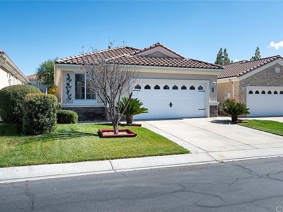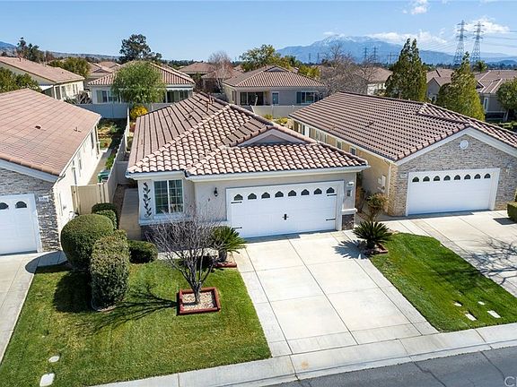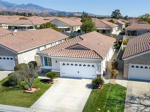 This beautiful Princess floor plan is located at the prestigious Solera 55+ gated community in Beaumont. The homes layout is welcoming and bright with tall ceilings and an abundance of natural light. This home features 2 bedrooms (1 Master Suite), 2 full bathrooms plus an office/den. The gorgeous kitchen has been upgraded with extended quartz countertops and stainless-steel sink. Features include new interior paint throughout including ceilings, reverse osmosis water filter, new interior and exterior ceiling fans, new bathroom light fixtures, new carpet flooring in bedrooms and den, new hardwood flooring, new electric garage door with built in garage counters and shelving, whole house water softener system, new toilet fixtures in both bathrooms, new concrete sidewalk that leads to the backyard and a new front screen door. All within walking distance to the clubhouse which has an indoor walking track, gym/fitness center, tennis courts, saltwater pool/spa, library, bocce ball court, banquet/meeting/card rooms and pool tables. This community is just off the 10 freeway with short drives to Cabazon Outlets, Casino Morongo, various Golf Courses, Palm Springs, and the scenic mountain town of Oak Glen.