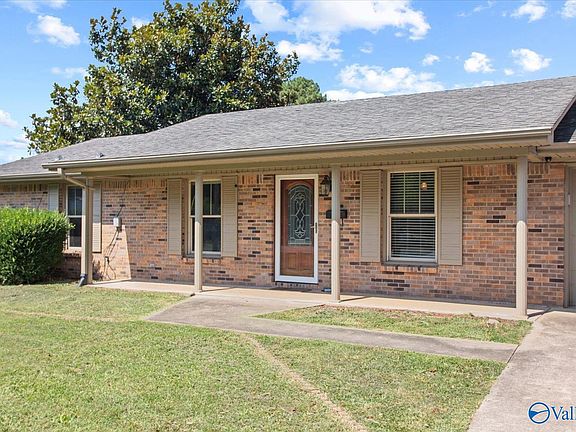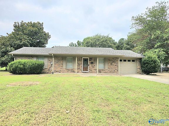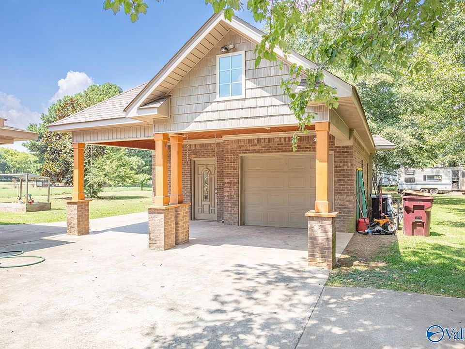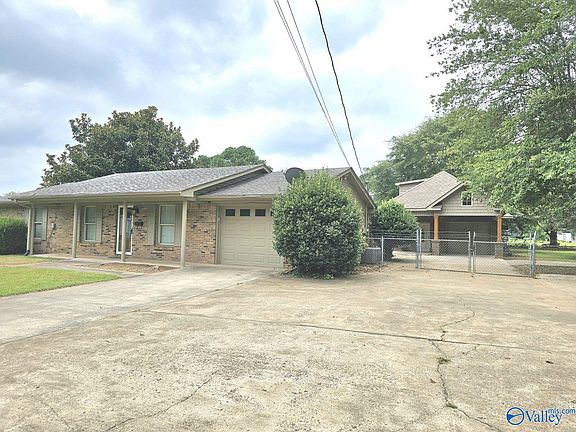Custom all brick home! This home features 3BR 2BA, custom tile work throughout the home, laminate flooring in bedrooms, primary bath has double sinks, spacious kitchen with lots of cabinets and granite countertops, tiled backsplash, large island, wainscoting in dining room! This home also has separate garage with covered patio, kitchenette, upstairs bedroom for a guest, large fenced-in yard! A safe room/storm shelter in the shop that is reinforced with steel, and the door is steel with 5 locks. Property is equipped with a sprinkler system! Alot of potential for this home! Minutes to Wheeler Lake! Minutes to Buc-ee's! Please view today!