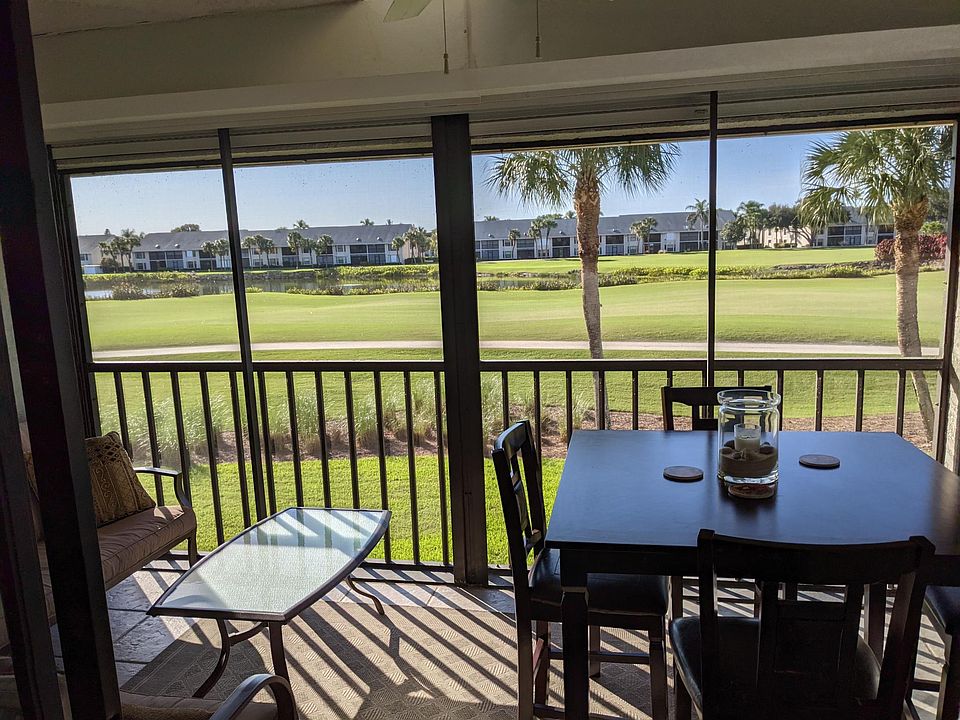 Upstairs Condo with lovely sunset views over the Kelly Green golf course from the lanai. Upgraded with granite in the kitchen and bath. This is a 2 bedroom - 2 bath unit with a den. Fully furnished with all the amenities for a seasonal rental. Has Laundry in unit and includes a 1 car garage and a gas grill. Pool, Tennis Courts are also available for use. No pets or smokers. Take over the balance of my lease from January 1 to May 1. 4-months for $10,000 or $2500/month plus tax. Similar units are going for $3,500 to $4,000 per month during the prime season. All utilities and cable-internet included. Full Golf amenities require an additional fee.