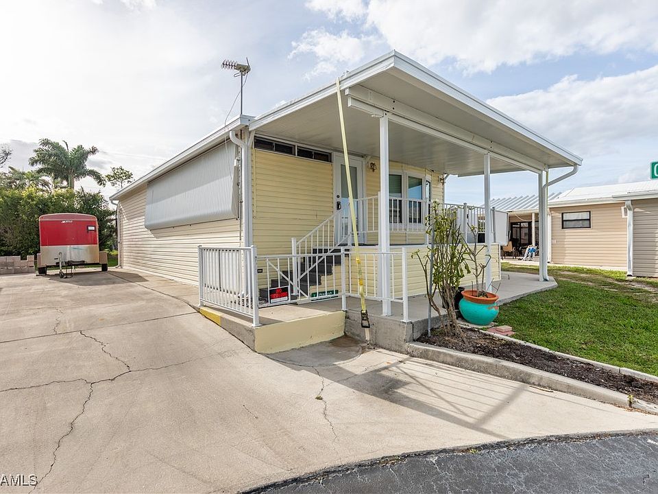 Discover Holiday Condos! Only FIVE miles to Fort Myers Beach! This two bed, two bath, well-maintained, handicap-accessible manufactured home situated on an oversized lot in a vibrant, all-age, pet-friendly community! This home is thoughtfully designed for accessibility, featuring a wheelchair lift (elevator), shower seat, and handicap bars in the primary bathroom. The kitchen was updated just two years ago, offering a fresh and modern space. You'll love the abundance of storage, both inside and out, including a 10' x 12' workshop, an 8' x 10' storage shed, and a spacious 10' x 20' covered patio—perfect for relaxing or entertaining. Enjoy resort-style amenities in this welcoming community, including two pools, a recreation center, tennis and pickleball courts, bocce, shuffleboard, and a variety of fun activities for all ages! Schedule your showing today and make this fantastic home YOURS!