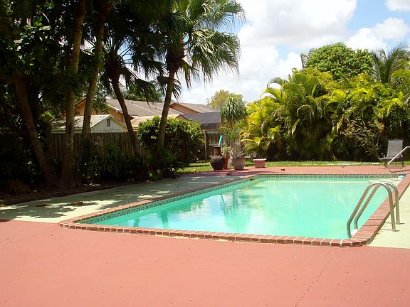 This beautiful home was built in 1987 in the Redlands Mansions area of Southwest Dade County. It is located on a 17603 sq. ft. tropical lot with over 20 palms tress, 1 alvacado, 1 key lime and numerous other tropical plant and foliage. The following upgrades have been added ** Beautiful notched wood veneer flooring installed through out entire home except bathrooms ** Trane XL 161 air conditioning unit ** Hurricane approved accordion shutters on 3 patio sliding glass doors ** Hurricane approved Bahama shutters on all other windows ** Matching stainless steel refrigerator, dishwasher, oven and microwave The home has 2 car garage/auto opener and wood work bench area, screened patio and open swimming pool located in middle of large concrete outdoor patio. The kitchen, dinning room and living room are all in open area under vaulted ceiling.
