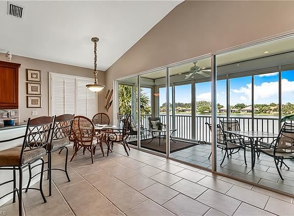 Get your piece of the Florida lifestyle. This 3 bedroom unit with attached garage has so much to offer. The kitchen has solid surface counters, breakfast bar and top line stainless appliances. It is an eat in kitchen and the home also has a formal dining room. The great room is open to the rest of the home and excellent views of the lake from your favorite chair. The main bedroom bath has just been renewed with gorgeous shower , tub, dual vanity and flooring. The 2 other bedrooms are generous in size. The larger of the 2 is being used as a den. This home also has new electric storm shutters and impact windows with plantation shutters. An over sized screened lanai has amazing views of the lake and grounds. The home is absolutely spotless as I am sure you will take note of.