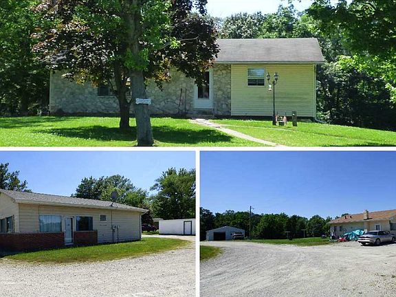 THREE HOMES FOR ONE PRICE! All currently rented. Highway frontage commercial possibilities + vacant lot. 3 BR, 2 BA home w/finished walk-out basement, pasture. Post frame building w/overhead doors could be used as boat storage. Center unit home/office/retail w/storage building, lg. open area, offices/bedrooms, kitchen, full bath w/NEW laminate flooring. Third home has 2 BR and wood stove. Lot w/highway frontage is .33 acres and can be purchased separately.Total of 4.58 acres offering more possibilities of campground or more housing. Just North West Boggs Park entrance. Close to Crane Base, I-69.