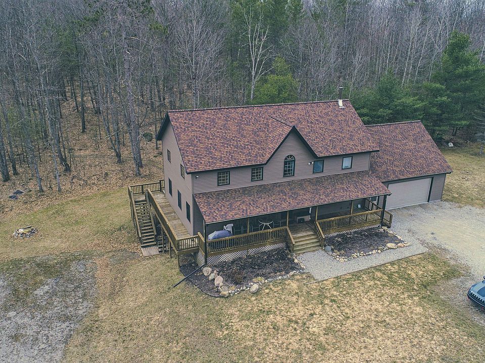Tucked in a five acre setting on a private Rd.is this 5 bedroom 3 bath home, on three levels of living space. Main floor offers laundry, open kitchen dining concept, and vaulted ceilings.