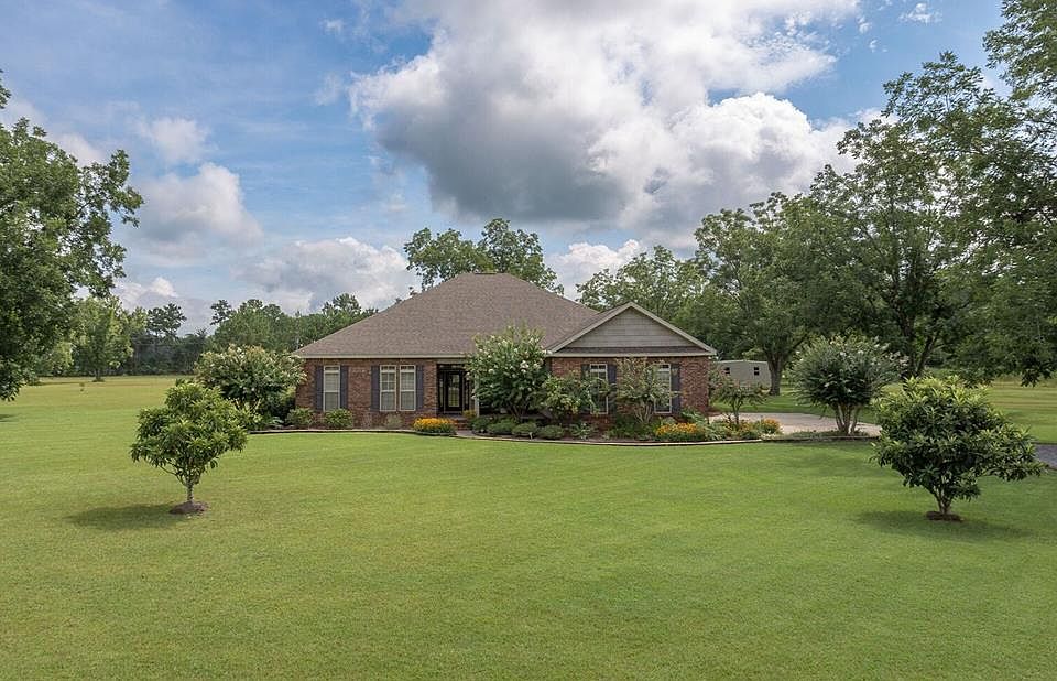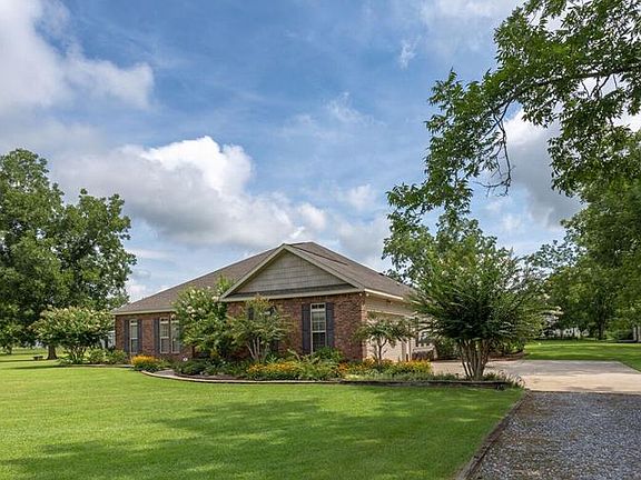 Stunning 3bd/2ba brick home with all the bells & whistles. Includes plantation shutters, wood floors, large laundry room, huge master suite w/double vanities, tub and separate shower, beautiful french doors leading to a perfect home office, screened back porch on an immaculately landscaped 2 acres. 2 storage buildings, flourishing garden, fish cleaning station and more southern charm than you can imagine. Looking for a little bit of heaven? Look no further. Security system is armed.