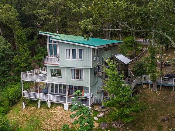 ONE SPECTACULAR SPACE, THREE SEPARATE AREAS..... The "General's Lodge" occupies the main area and includes the upper space offering 3 BR, 2 BA w/wood stove & spectacular views.....The "Hideaway Lodge" is nestled in the lower level of the main lodge & offers 2 bedrooms, 1 bath & features the same amazing views!.... The "Tree House" is positioned above the detached garage high in the trees boasting an apartment living feel w/1 bedroom, 1 bath and the same amazing view! All three properties can function alone as individual spaces OR use them all for a fabulous family retreat! Positioned on 2.74 acres w/trees, outdoor spaces, over 300' of Brow Views AND an impressive rental history!!