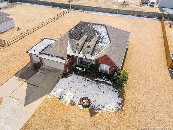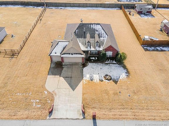 Beautifully built home with three bedrooms, 2 baths, and an office on a 1/2 acre lot! Post tension slab, three car garage, kitchen island, and a large backyard. You'll have the convenience of a quiet neighborhood outside of town in Rogers' County while remaining close to everything you need!